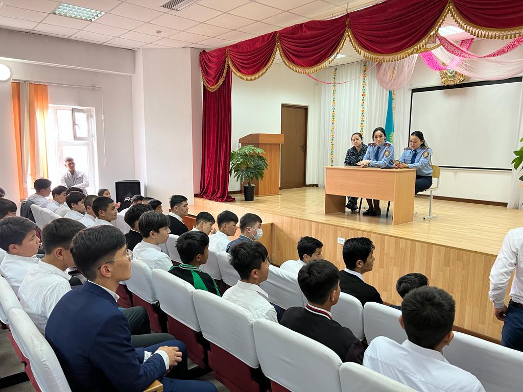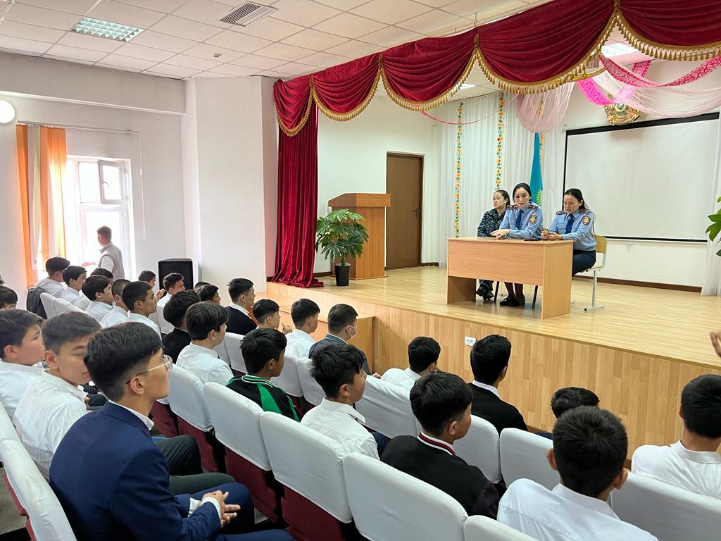 Сәуір айының 13 күні мектебімізде Қарасай ауданы ПБ ЖПҚБ ЮПТ аға инспекторы полиция майоры М. Джаксыбаева, полиция капитаны М. Даркенбаева және полиция капитаны М. Ережеп 5-11 сынып оқушыларына "Нашақорлық, темекі шегудің зардаптары" туралы және ҚР Заңының 441-бабы туралы түсіндірме жұмыстарын жүргізді. Сонымен қатар сабақтан себепсіз қалмау, форма үлгісін сақтау, шаш үлгісі туралы да айтылды. Оқушылар тарапынан қойылған сұрақтарға жауап берді.