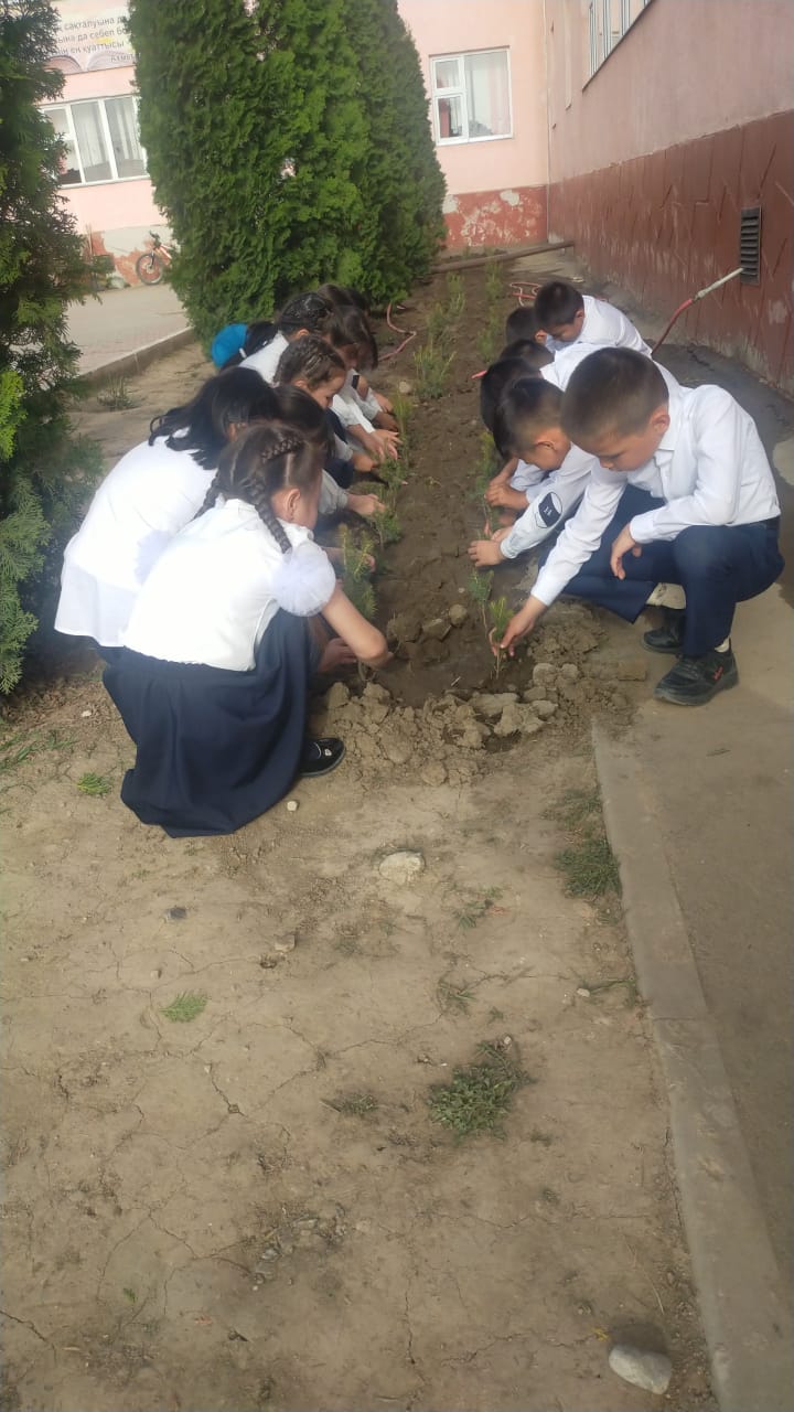 Үштерек орта мектебі "Жасыл ел" жобасы аясында көгалдандыру жұмысын жүргізді » Үштерек орта мектебі