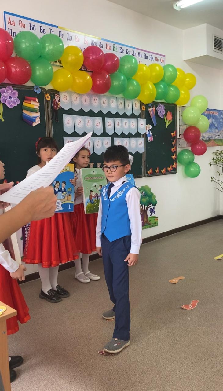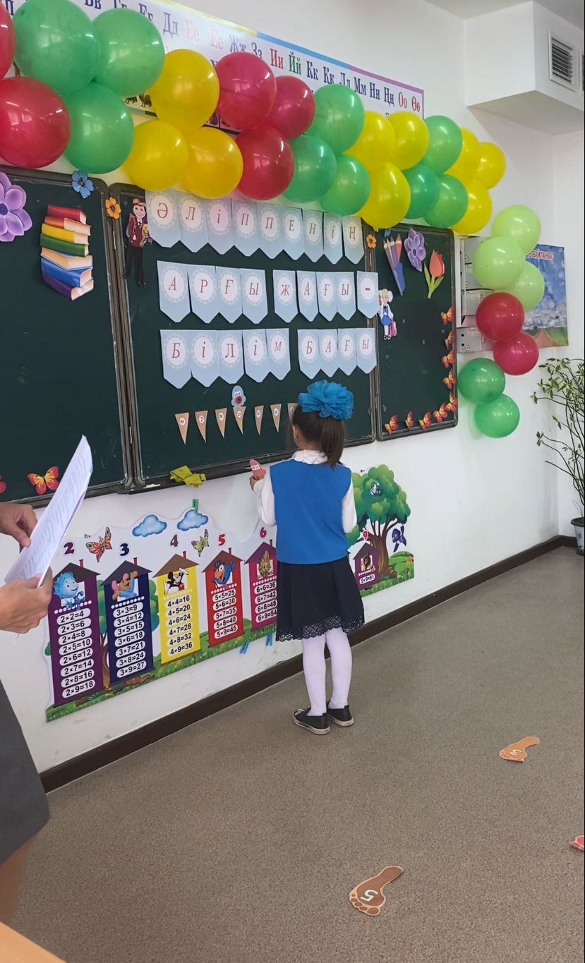 "Әліппенің арғы жағы -білім бағы" тақырыбында 1"Е"сынып мұғалімі А.Жусипова оқушылардың жыл бойы алған білімдерін бекіту