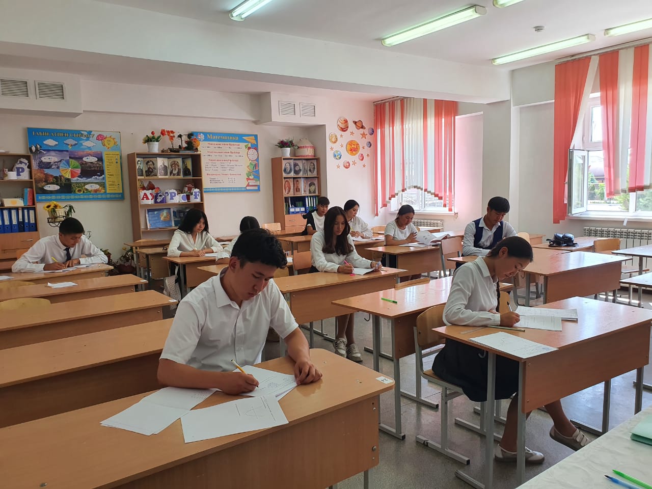 2023жылдың 08 маусым күні 11сыныптың 54 білім алушысы "Алгебра және анализ бастамалары" пәні бойынша қорытынды аттестаттау емтиханын бастап, мектеп директоры Р.Жұрын жас түлектерге емтихан өткізілу ұзақтығы 5 сағат екенін ескертіп,сәттілік тіледі.