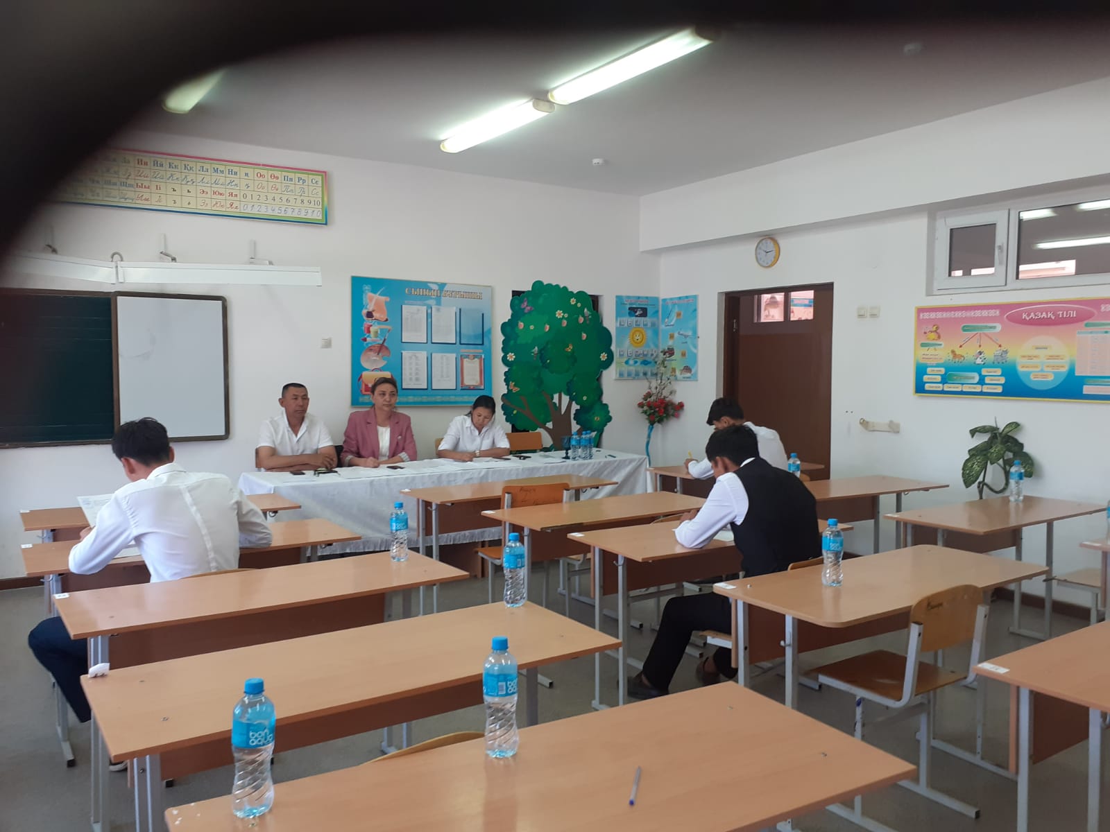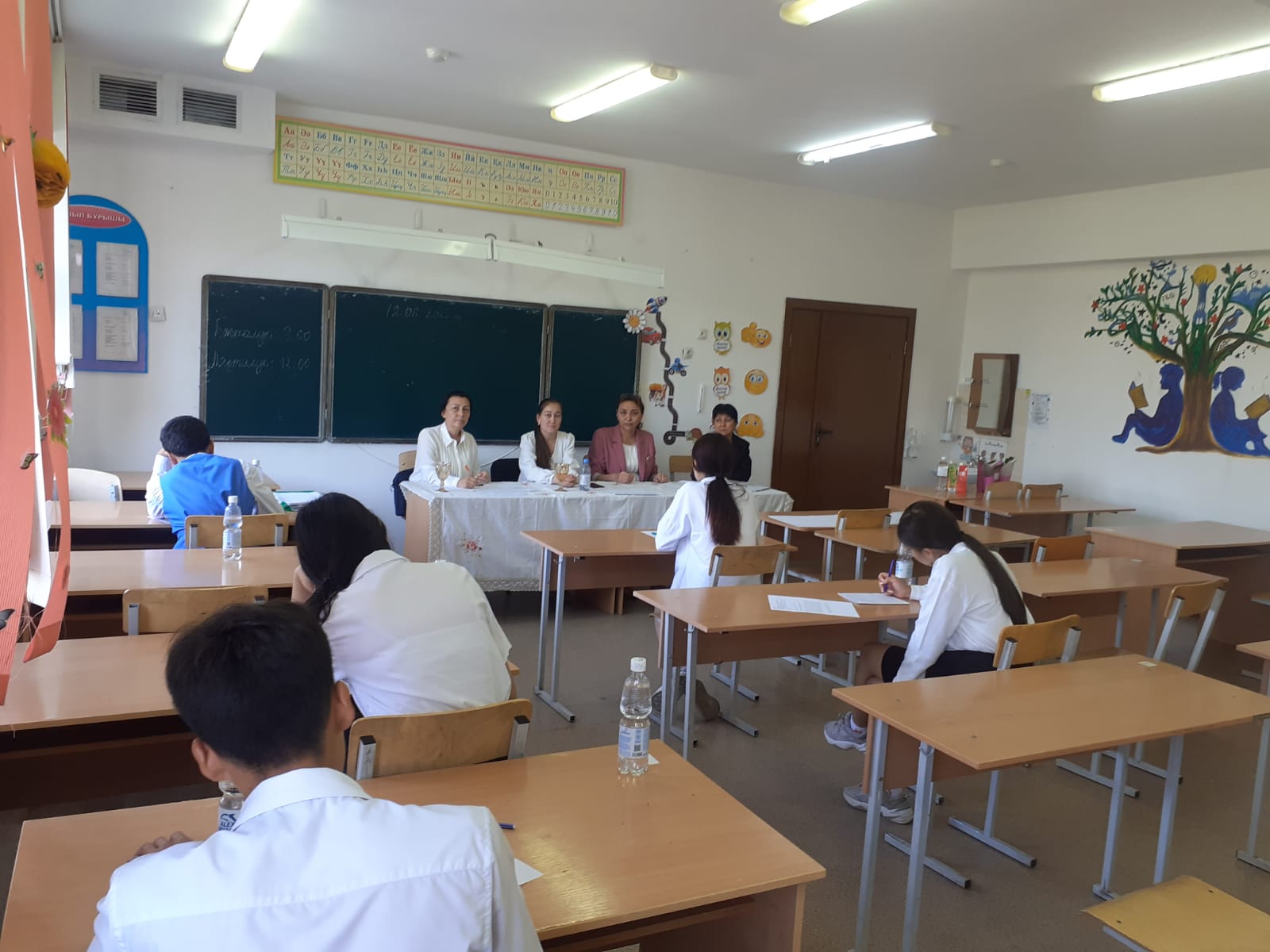Ағымдағы жылдың 12 маусым күні 11 сынып білім алушылары "Қазақстан тарихы" пәні бойынша қорытынды аттестаттаудың ауызша емтиханына қатысты, мектебіміздің директоры Р.Жұрын қорытынды аттестаттау нұсқаулығымен таныстырып, сәттілік тіледі
