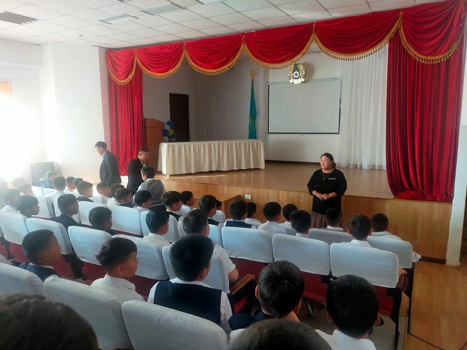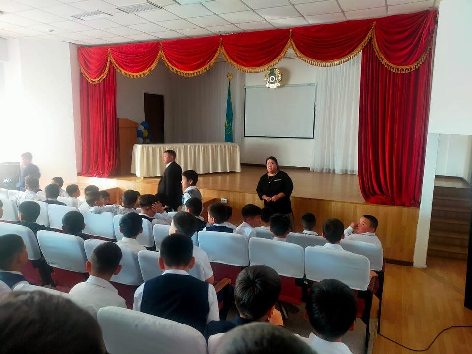 Мектебімізде 11 сәуір күні ДТІЖО А.Нусупбекова мен Ж.Өмірбекұлы 9-11 сынып оқушыларына құқық бұзушылықтың алдын алу, зорлық -зомбылықсыз балалық шақ тақырыбында түсіндірме жұмыстарын жүргізді.