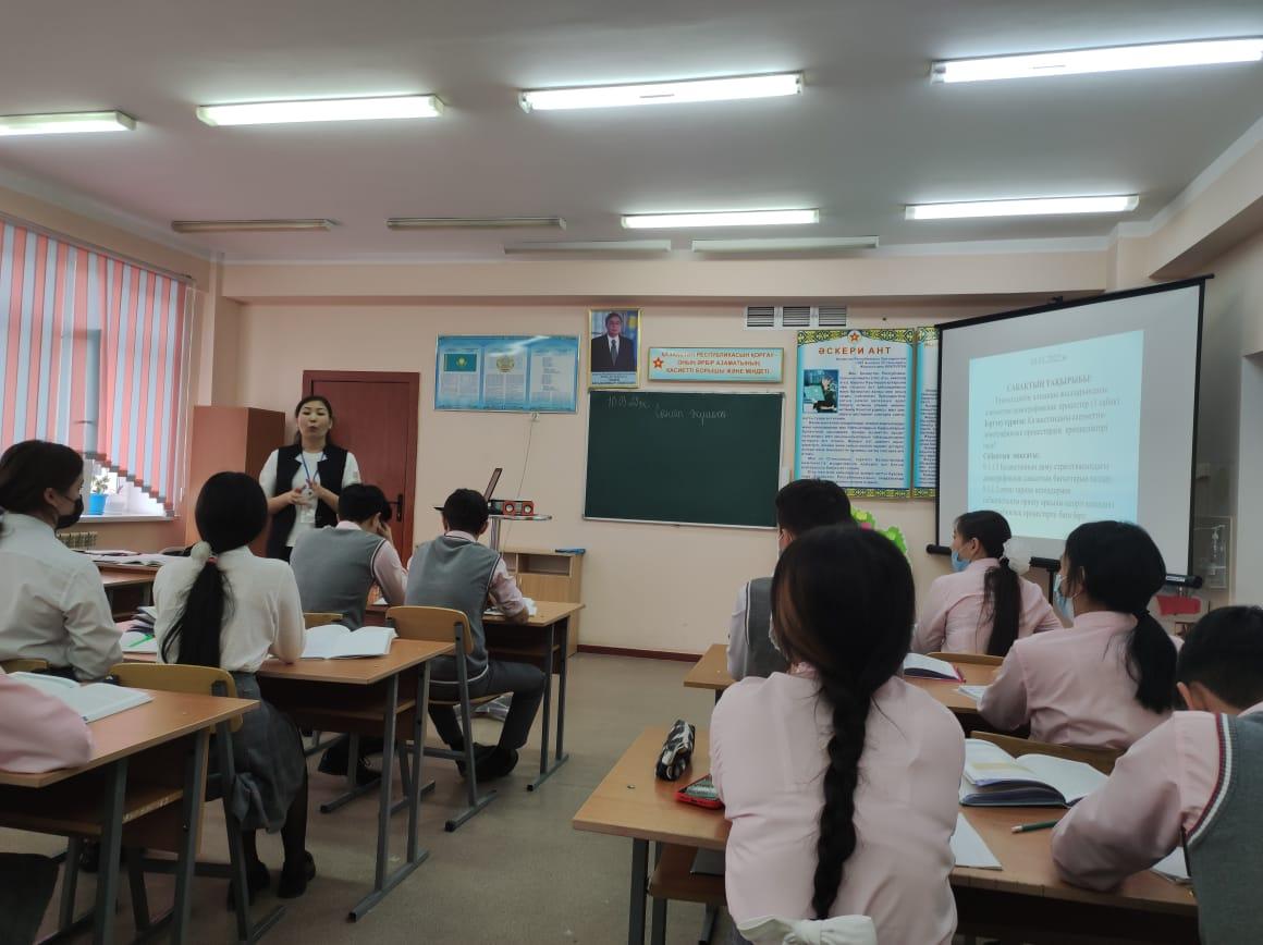 "Үштерек орта мектебі" КММ-нің тарих пәнінің мұғалімі педагог - сарапшы Алимбетова Альбина Катарбаевна өз тәжіриесімен алмасу мақсатында "Әлжан Бұқарбайқызы атындағы қазақ орта мектебі" КММ -де 9 А сыныбында "Тәуелсіздіктің алғашқы жылдарындағы әлеуметтік -демографиялық процестер" тақырыбында сабақ өткізді.Сабақта қолданған SWOT талдау, сұрақ-жауап әдісі, әр түрлі қалам және padlet әдіс - тәсілдерін қолдана отырып сабаққа қойылған екі мақсатқа жете білді.Сонымен қатар басқа сыныптарға тәжірибе алмасу мақсатында сабаққа қатысты.