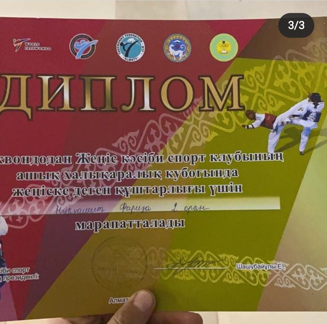 Халықаралық таэквондадан жарысқа қатысып ІІ орын иеленген
