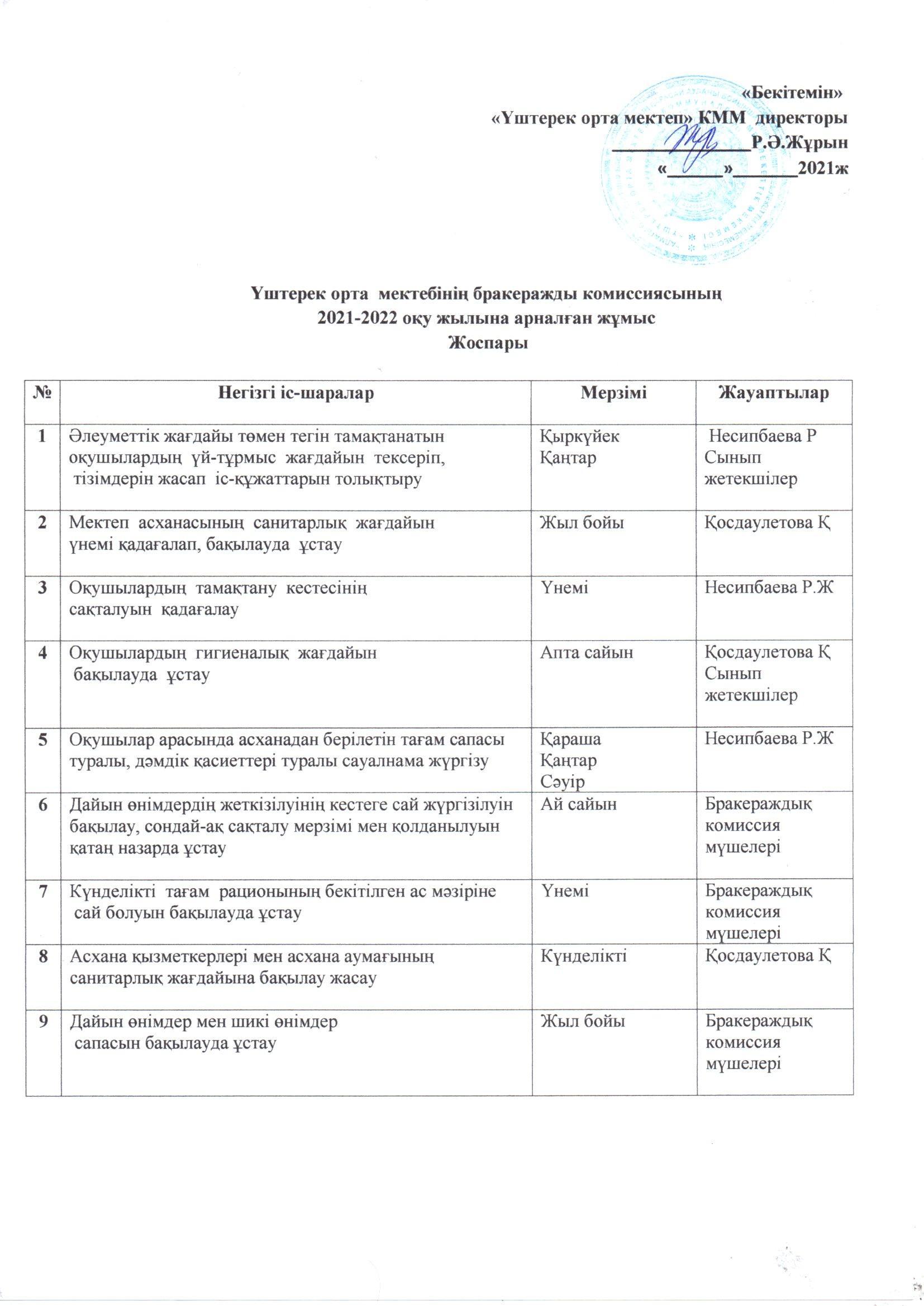 «Үштерек орта мектебі» КММ 2021-2022 оқу жылына арналған жылдық жоспары » Үштерек орта мектебі